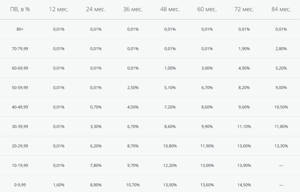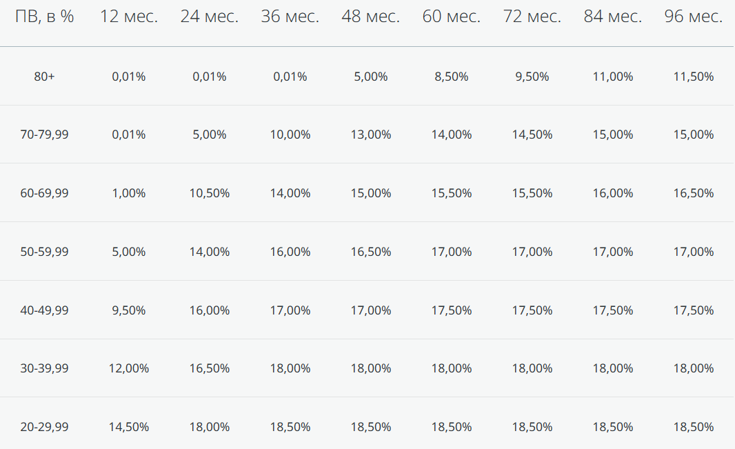 - При сроке 60 месяцев: ставка 0,01% годовых при первоначальном взносе от 80%.