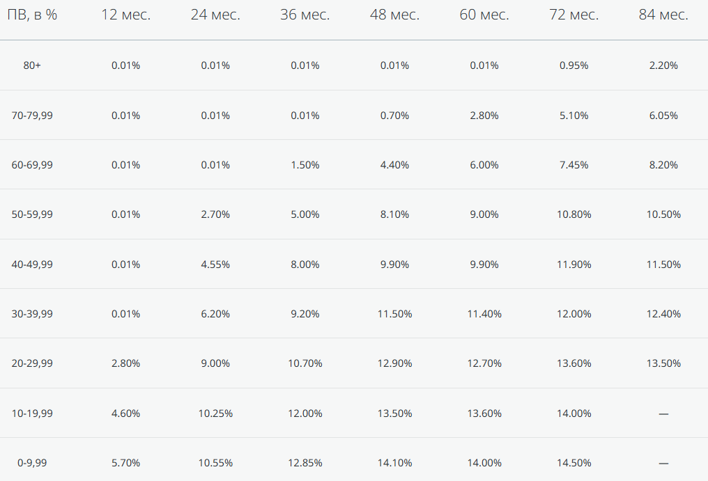 - Полная стоимость кредита на момент оформления Договора – от 0,010% до 20,491% годовых, процентная ставка – от 0,01% до 14,50%.